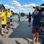 Dort begleiteten sie mit einem großen Aufnahmeteam zwei Wettkampfgruppen mit jungen Nachwuchsathleten verschiedener Sportarten im Biathlonstadion und auf der Rollerbahn.