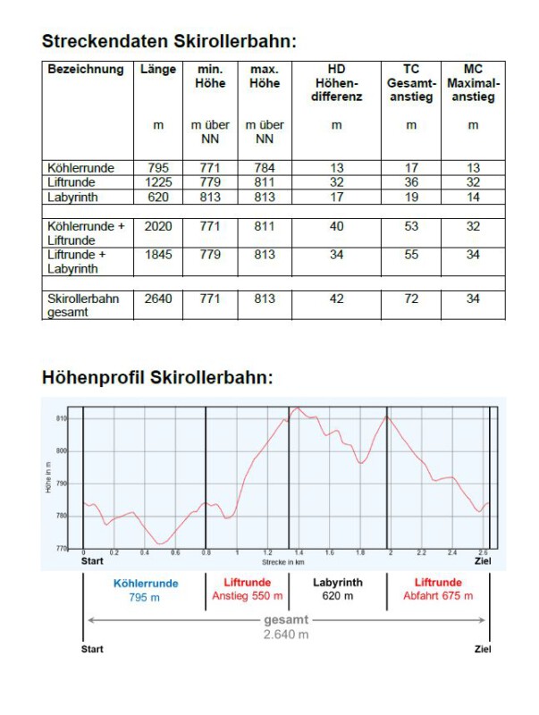 | Hinweise zur Benutzung | -Benutzung auf eigene Gefahr -keine regelmäßige Reinigung -Skirollerfahrer haben Vorrang -Vorgesehene Fahrtrichtung ist strikt einzuhalten |